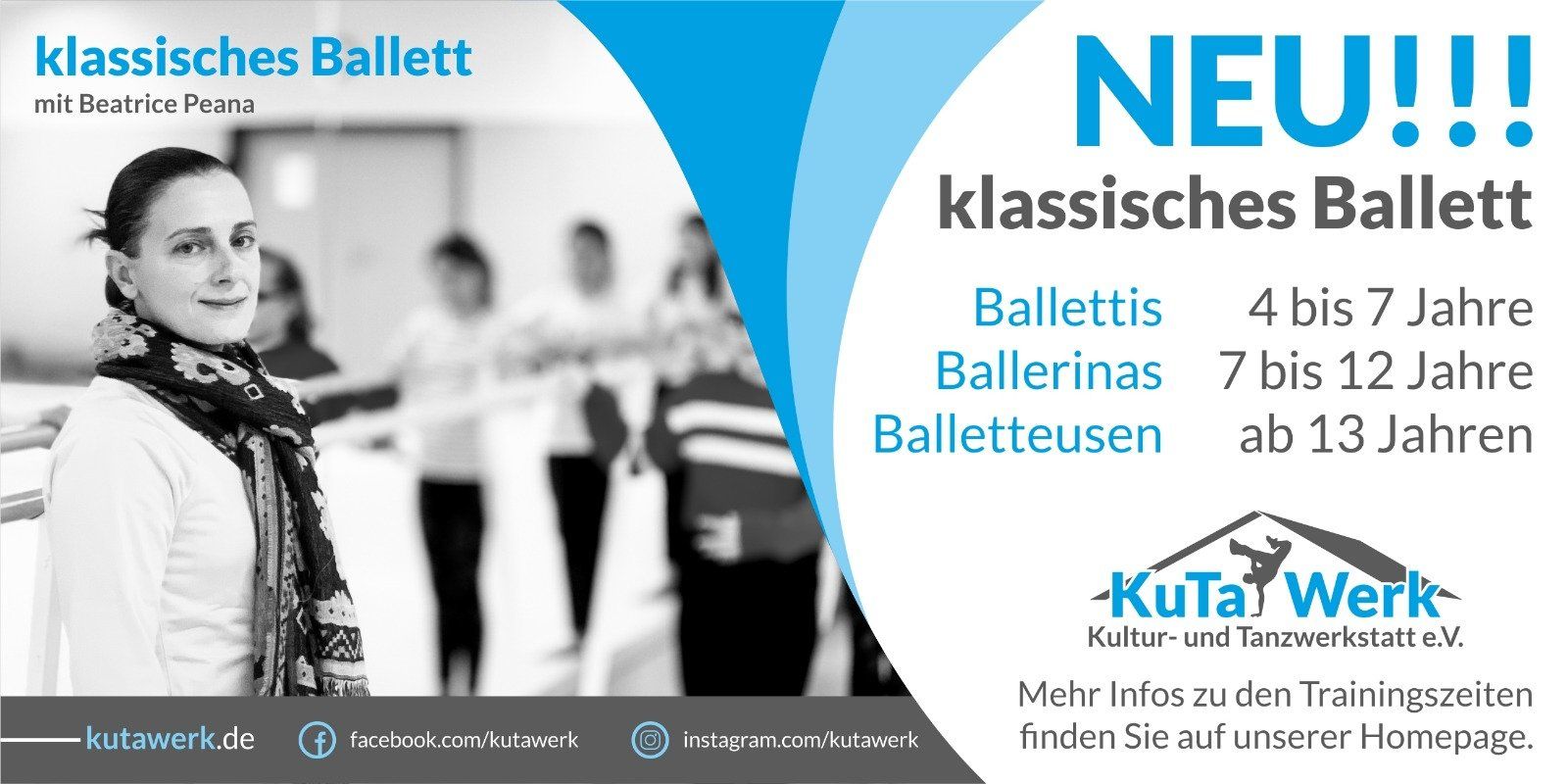 Neben vielen Stilen wie HipHop, Breakdance oder JazzModernDance wird über den Kultur- und Tanzwerkstatt e.V. auch klassischer Tanz angeboten. Unter der Leitung von Beatrice Peana lernen Kinder in verschiedenen Altersgruppen die Kunst des Balletts.